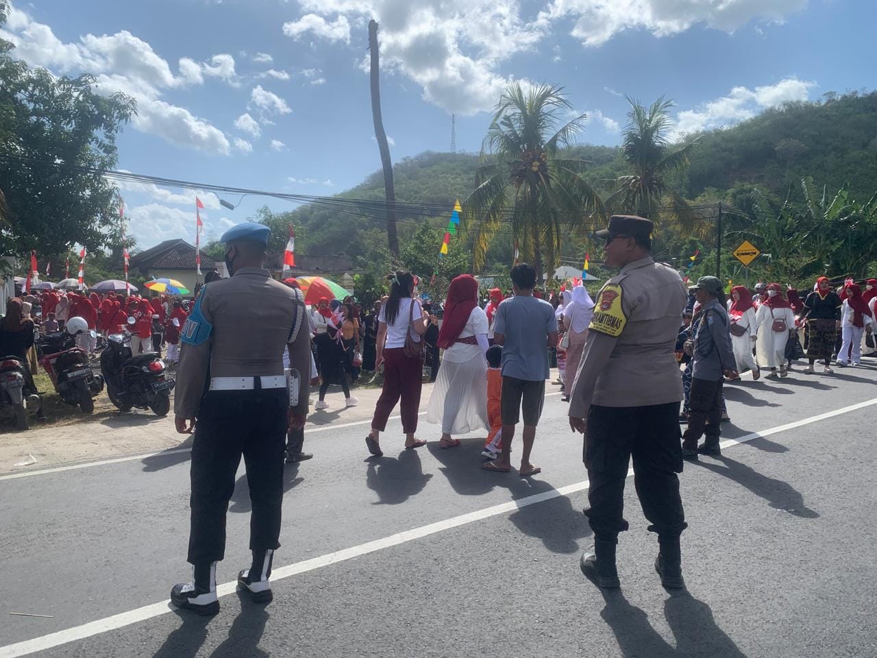 Pengamanan yang ketat dan terkoordinasi memastikan seluruh rangkaian acara berjalan lancar. Personel gabungan dari Polsek Lembar, Posramil Lembar, dan Piket SPKT Polsek Lembar diterjunkan untuk mengawal jalannya pawai. Di bawah komando langsung Kapolsek Lembar, Ipda Joko Rudiantoro, S.H., M.H., tim pengamanan memastikan rute pawai tetap aman dan kondusif bagi seluruh peserta dan masyarakat yang menyaksikan.