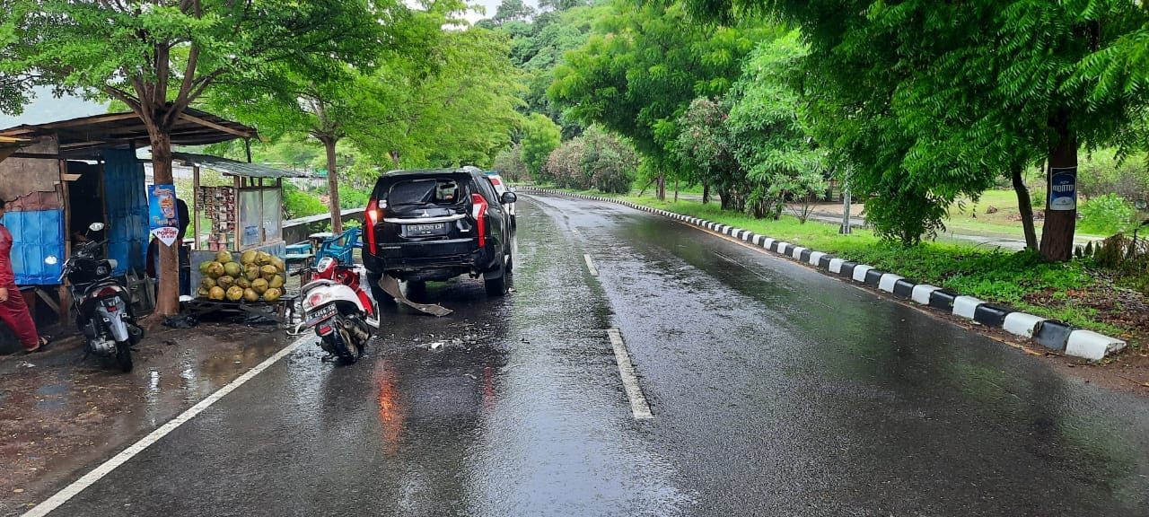 Laka lantas ganda yang melibatkan SPM Honda Scoopy dengan No Pol EA 4266 SQ dan Mobil Pajero bernomor Polisi DR 1056 CP itu terjadi pada Jum,at (28/11/25) pukul 15.00.Wita.