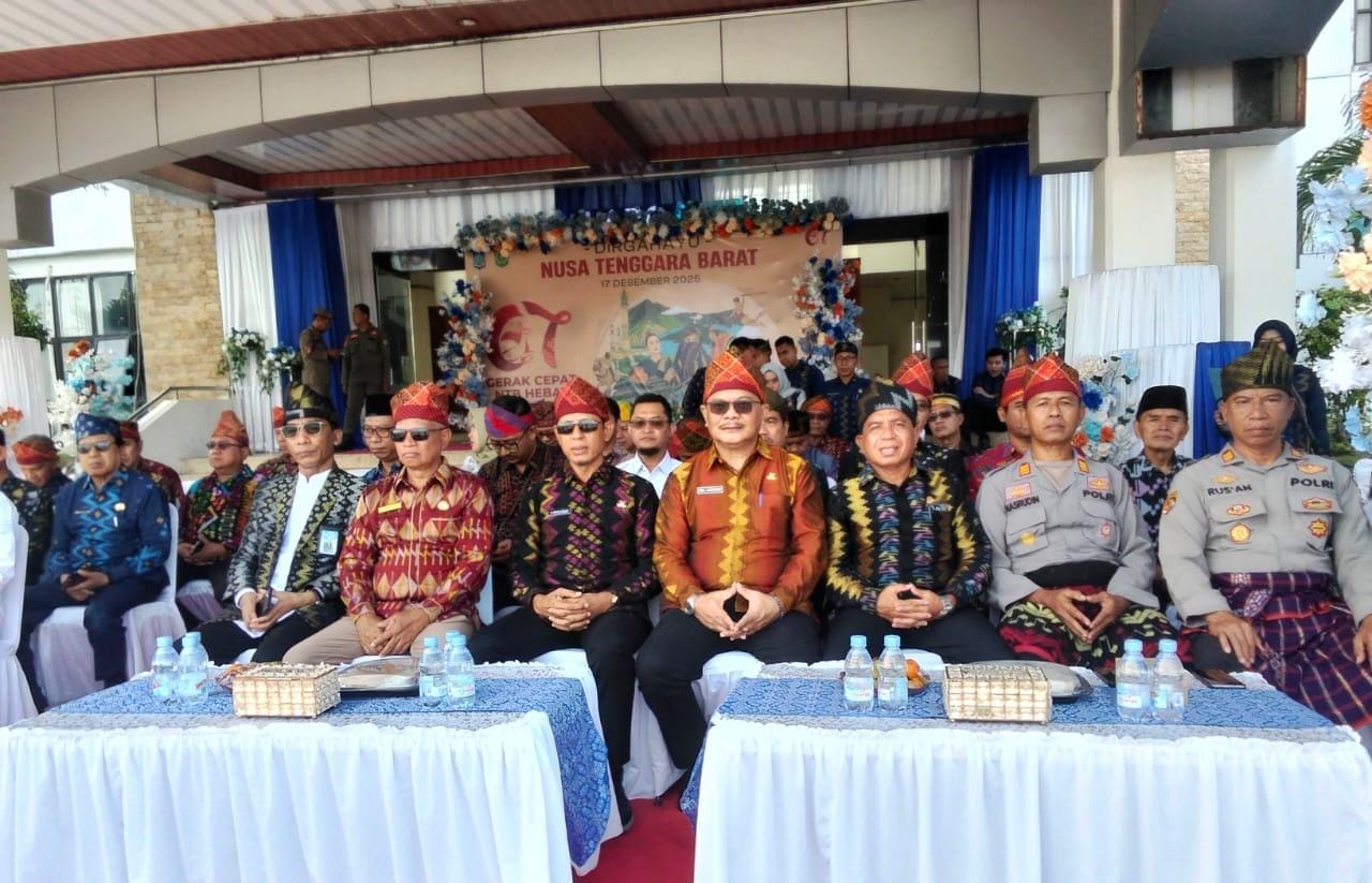 Mewakili Kapolres Bima AKBP Eko Sutomo S.I.K.,M.I.K., Kabag Ren Polres Bima Polda NTB AKP Nazaruddin mengikuti Apel Peringatan HUT ke 67 Provinsi Nusa Tenggara Barat Rabu 17 Desember 2025.